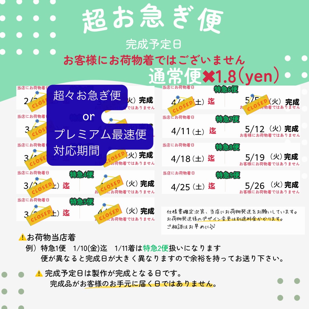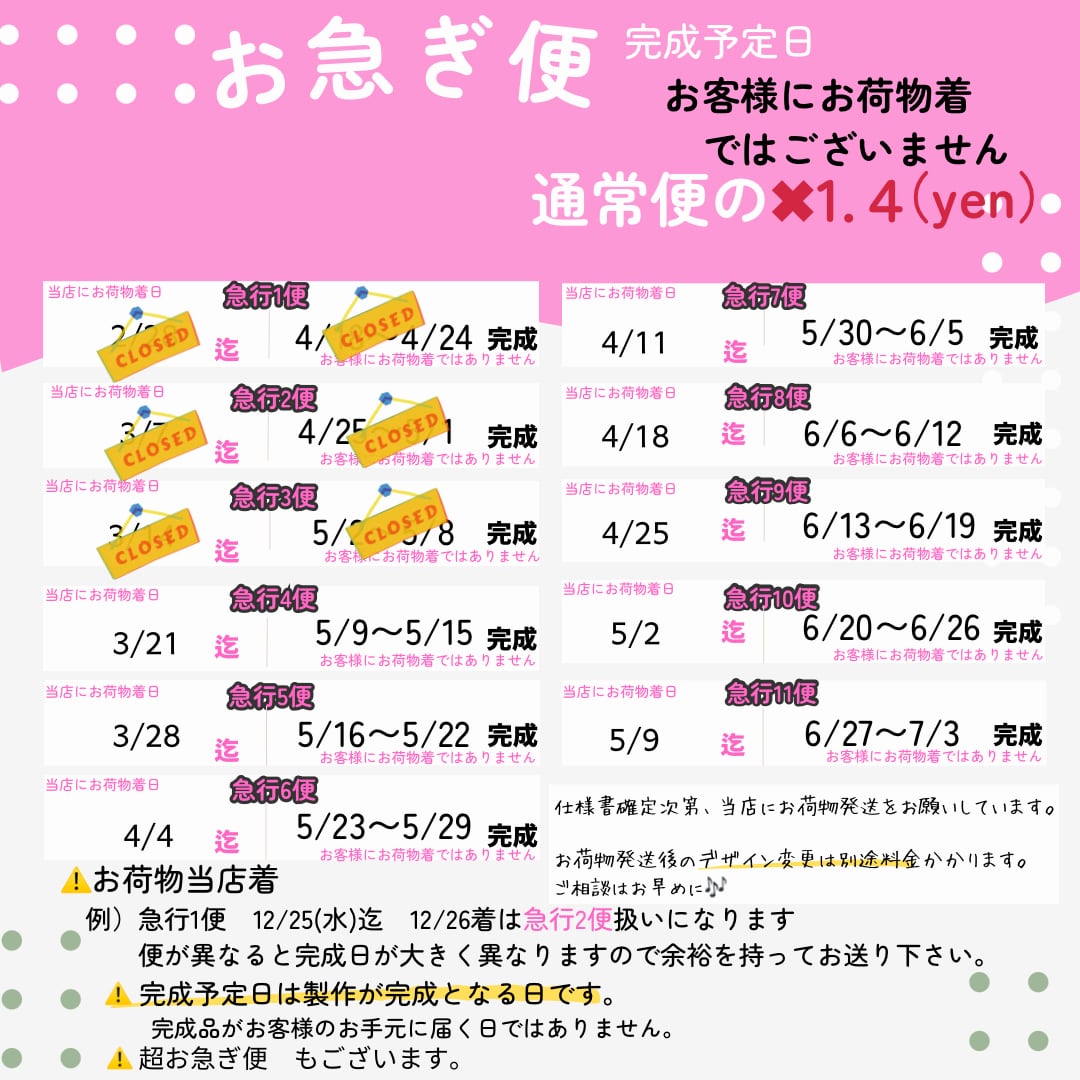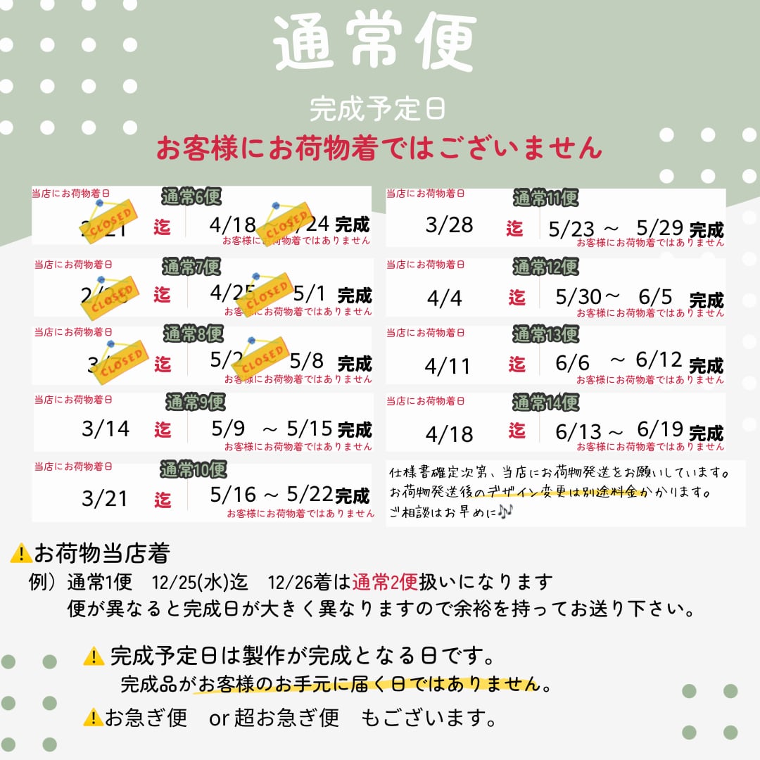 納期のご確認をしていただきオーダーをお願いいたします✨